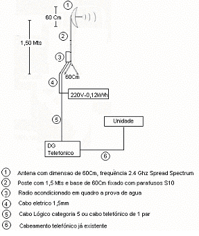 utilizando rádio, será instalada uma antena no topo do seu